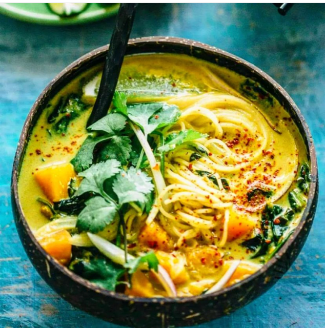 Thai Green curry bowl with kombucha squash and shrimp